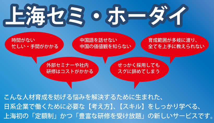 日本で実績のあるサービスが中国版に進化しました。中国事業成功に向けた人材育成はお任せください。